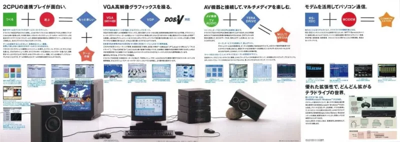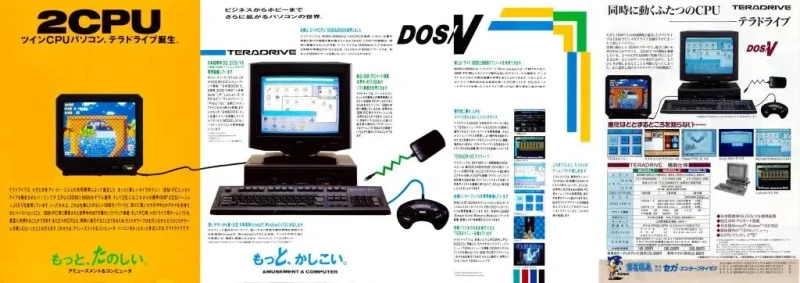 Signalons aussi le fait qu’à cette période de l’histoire, la plupart des Japonais n’étaient pas très friands des produits occidentaux. Alors même si le TeraDrive a été développé par la branche japonaise de SEGA, il n’en reste pas moins un ordinateur purement américain. En effet, il a été produit par IBM et utilise principalement le système d’exploitation DOS/V qui lors de sa sortie était trop peu populaire au Japon.